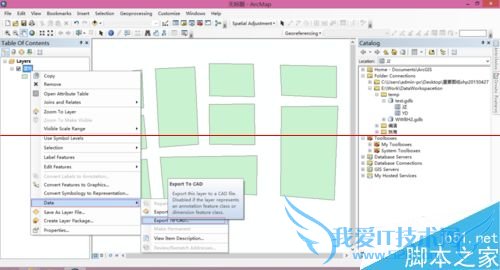 1、展开ArcCatalog连接的文件,选择需要转化的数据。单击右键在弹出的右键菜单中选择导出(Export)——导出到CAD(To CAD);