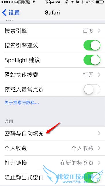 2、接着在这里选择密码与自动填充。