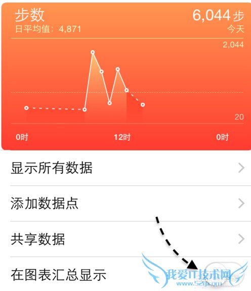 4.我这里以添加“步数”统计为例,点进打开以后请选择“在图表汇总上显示”选项,如图所示