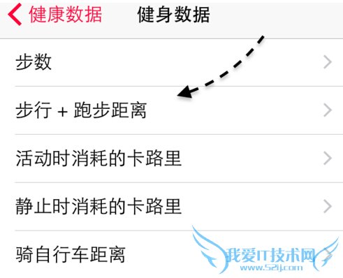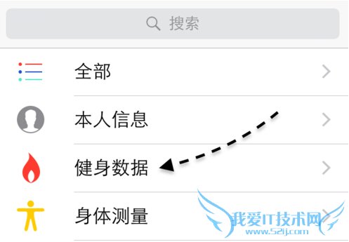 2.在健康选项列表中,有很多数据分类,这里以选择添加“健身数据”为例,如图所示