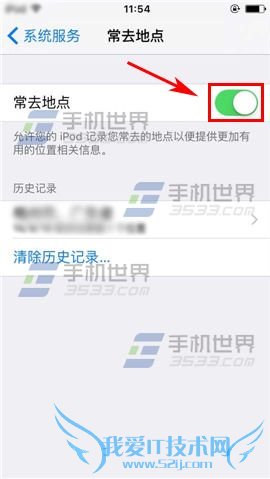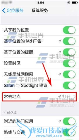 3)现在我们找到并点击【常去地点】,最后关闭【常去地点】右边滑块即可。(如下图)