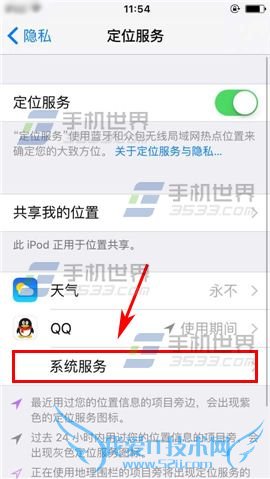 2)接着点击【定位服务】一栏,进入后点击【系统服务】。(如下图)