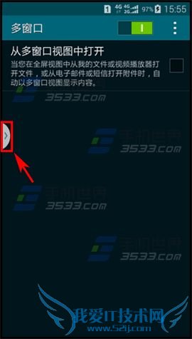 2)点击左侧【>】呼出多窗口,从左侧拖动图标到右侧打开该应用;(如下图)