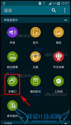 1)打开三星S6的【设定】,选择【声音及显示】栏的【多窗口】,打开上方【多窗口】选项开关;(如下图)