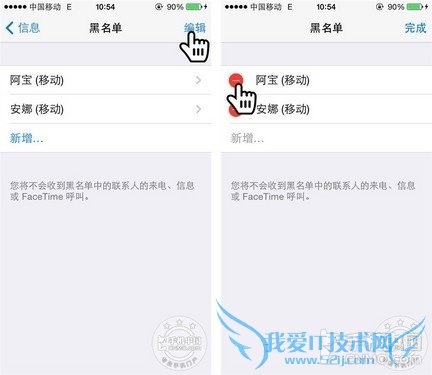 如若将黑名单内的联系人移出,请参见上图。信息黑名单这个功能仅仅针对的你手机中已经添加的联系人,陌生号码如果要添加到黑名单,要先将电话号码存储到联系人才能添加。下面讲解下“拦截电话”的方法。