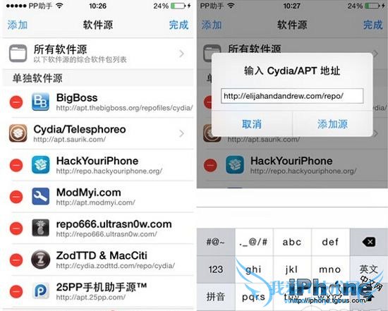 2、打开Cydia,添加软件源【elijahandandrew.com/repo/】