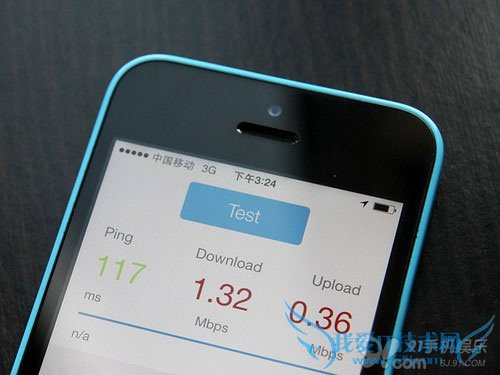 按照卡贴的使用方法,我们顺利在港版型号为A1529的iPhone 5c上成功开启了中国移动的3G网络。接下来我们首先还是需要测试一下速度,看看实际表现如何。
