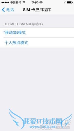该卡贴在sim卡应用程序里面设置了两个菜单选项,分别是“移动3G模式”和“个人热点模式”,默认为“移动3G模式”。