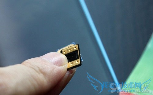 第三步,我们可以拆开包装,取出里面的卡贴,小心撕下绝缘保护作用的黄色贴纸,然后将其有六个小触点的一面与SIM卡金属面紧贴起来,然后一并放入sim卡槽。由于该卡贴工艺等方面比较先进,面积与sim卡一样,而厚度基本忽略不计,因此即使放入卡贴,用户也并不需要更换劣质的sim卡槽,原装的卡槽无压力。