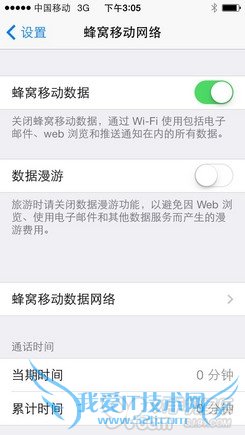 如果你有个人热点分享的需求,便可以在这里切换。切换后,信号会重新搜索,待出现中国移动后,我们需要进入设置-蜂窝移动网络页面,打开数据漫游,此时3G标识便会再次出现,随后个人热点开关也将会出现,开启后便可以把手机的流量共享个其他设备。