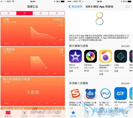 4.加入健康App,可以显示M8运动协处理器和第三方配件的健身数据