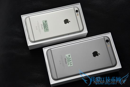 此次拿到的是白色的iPhone6和黑色的iPhone6 Plus行货公开版(A1586和A1524)。两款手机的包装除了大小之外没有任何区别,包装盒上也没有任何彩色的手机菜单或界面内容而只有轮廓,侧面则是iPhone的字样和苹果的logo,并未写明是6还是Plus,但根据包装大小就可以轻松判断了。