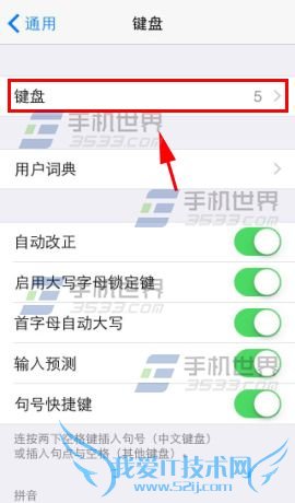 2)进入后,我们可以开启一些常用的键盘设置如【首字母自动大写】等,小编这里全部开启了。点击【键盘】,进入键盘后根据需求添加删除输入法。