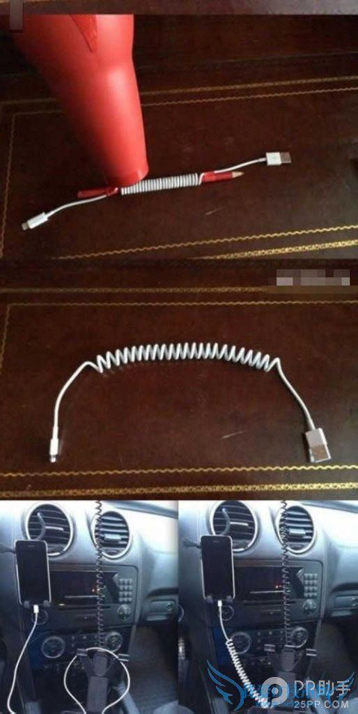 你是不是觉得在车上给iPhone手机充电的原装数据线会使车里显得搞的乱糟糟的,如果你正好是这样想的话,不妨看看上面这个小方法。