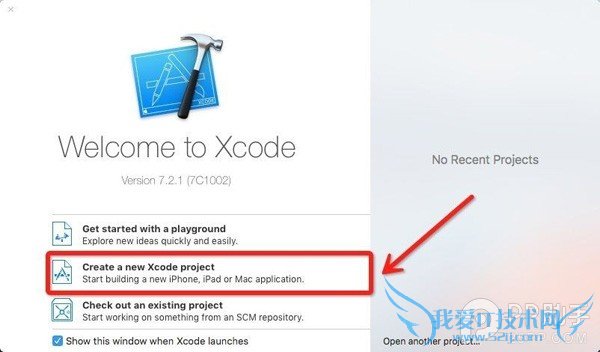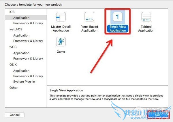 3、选择“Create a new Xcode project”创建一个新的项目,然后选择单视图,点击下一步。