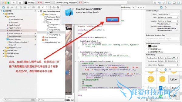 10、此时程序已经安装在手机里面了,但是得不到系统的信任,现在要做的就是在 iPhone 手机上解锁屏幕,前往设置 - 通用 - 设备管理 - 开发商应用,信任你的 Apple ID,然后再次点击 Xcode 里的 Running。这样一来,我们就已经成功的完成了开发一个完整的程序,试着点击它吧。