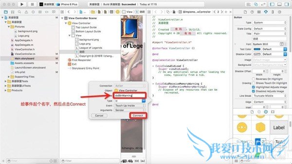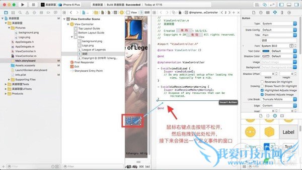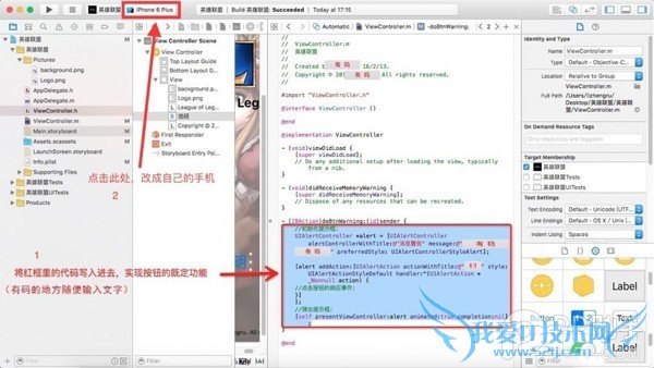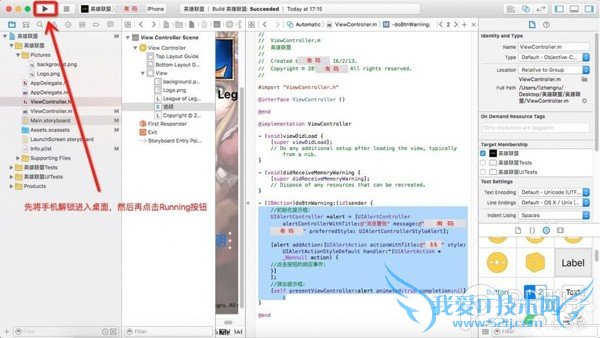 8、修改 ViewController.m 文件,赋予按钮功能。
