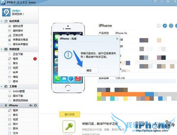 3、然后等待软件修复iPhone的闪退问题,随后会提示修复闪退成功,点击“确定”即可。