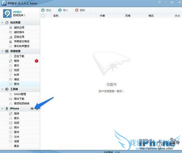 1、首先用iPhone6的原装数据线与电脑连接起来,这里以PP助手为例,打开PP助手,等待与iPhone连接成功以后,点击左窗格中的“iPhone”;
