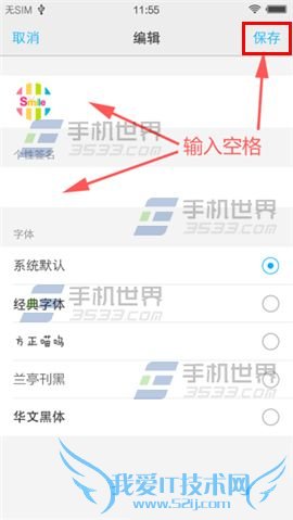 ¡¡¡¡2)ÔÚ¡¾êdzơ¿ºÍ¡¾¸öÐÔÇ©ÃûÕâÁ½À¸ÊäÈëÒ»¸ö¿Õ¸ñ¡¿£¬(×¢£ºÖ»ÄÜÊäÈë¿Õ¸ñ£¬²»ÄÜÊäÈëÆäËû×Ö·û)£¬È»ºóµã»÷¡¾±£´æ¡¿£¬·µ»ØËøÆÁ½çÃæ¿ÉÒÔ¿´µ½êdzƺ͸öÐÔÇ©ÃûÏûʧÁË¡£(ÈçÏÂͼ)