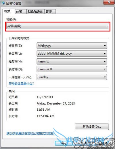 Win7用户:控制面板—>时钟、语言和区域—>区域和语言—>将语言改成英语(美国)