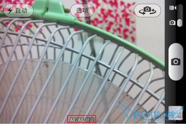 2.将iPhone放到需要虚化的背景前7~20厘米,长按屏幕然后放开,这时会看到AE/AF Lock字样出现在屏幕下面(如果对7-10cm的距离没概念的话,大约是半个手掌那么长就行了)