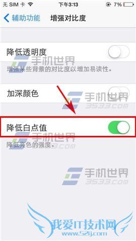 2)进入后再点击【增强对比度】,选择【降低白点值】开启,就可以启动护眼模式啦。(如下图)