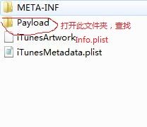 然后解压缩,解压后会有两个文件夹和两个文件,在Payload中.app那个文件夹里找到Info.plist