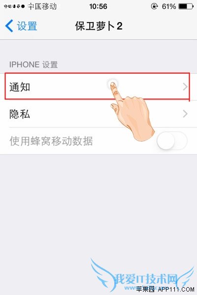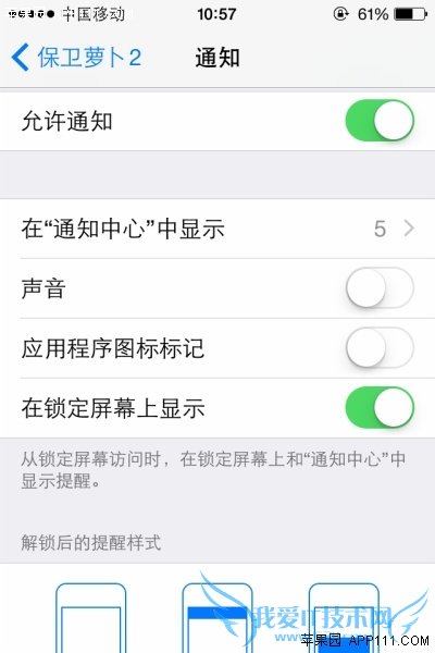 第二步,点击“通知”选项,即可进入“通知”设置页面,可以设置在“通知中心”中显示、声音、应用程序图标标记等。