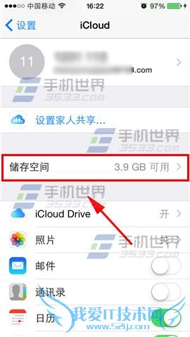 1)打开iPhone6【设置】界面点击【iCloud】,点击【存储空间】。(如下图)