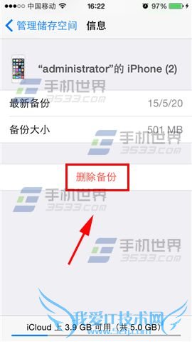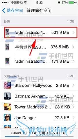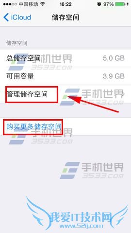 2)这里有两个选择,不差钱的可以点击【购买更多储存空间】,小编点击了【管理储存空间】,点击【备份名】。(如下图)