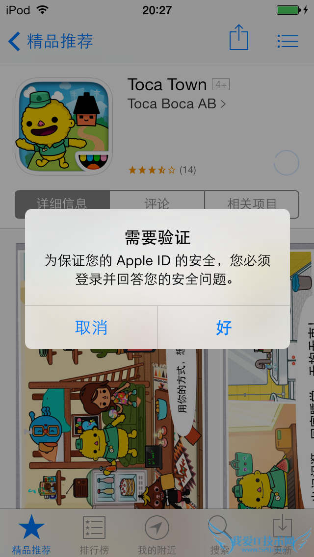 第五,使用该账号登陆AppStore,选择一个需要购买的App,点击价格并再次点击购买,输入AppleID密码,在弹出框中选择验证AppleID的安全。