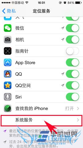 2)进入“隐私”界面后点击“定位服务”,然后往下拉,找到“系统服务”后点击进入。