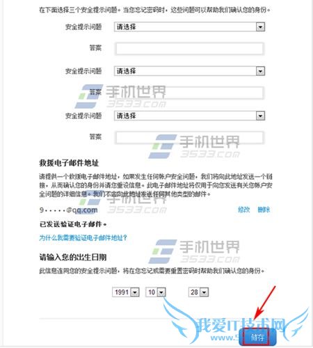 5)跳转界面后,设置好【密保问题】和【密保答案】后点击【储存】即可。(如下图)