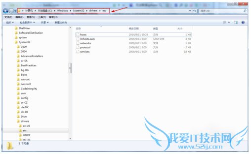 依次打开,系统盘的WindowsSystem32driversetc目录