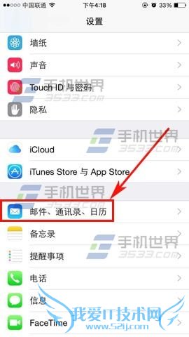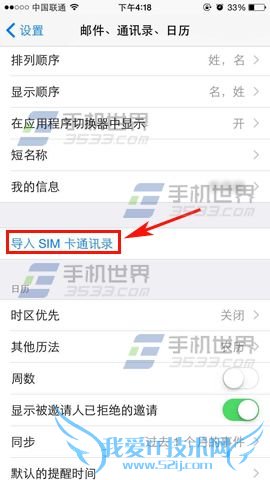 首先我们先打开【设置】,然后点击【邮件、通讯录、日历】,打开后往上拉找到【导入SIM卡通讯录】并点击就可以了。(如下图)