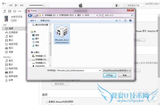 4.iTunes会弹出对话窗--请选择已经下载好的固件--点击更新--等待iTunes运行。