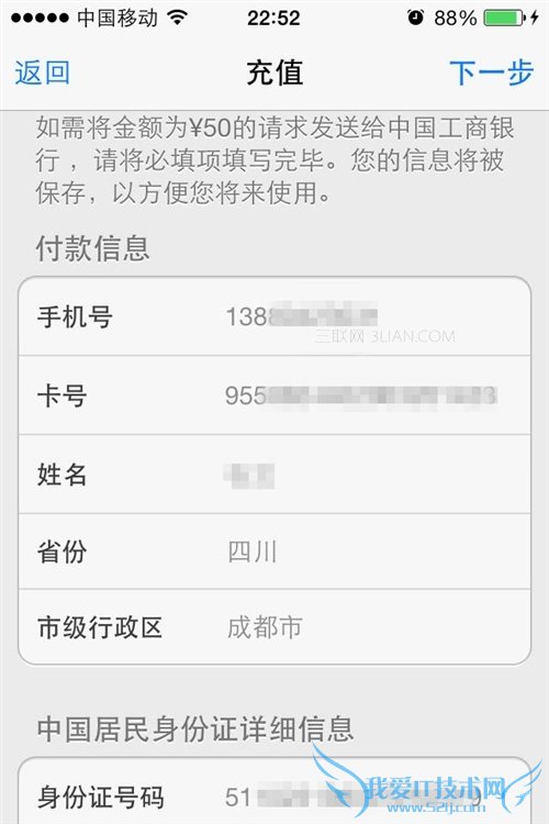 STEP9:苹果支付通道主要通过中国银联。因此接下来会要求你输入与银行卡相匹配的相关信息,包括手机号、姓名、身份证号码以及地址等,请如实填写这些信息。其中手机号以及身份证号是帮助中国银联进行付款验证的;地址则是方便苹果寄送相关的账单信息。