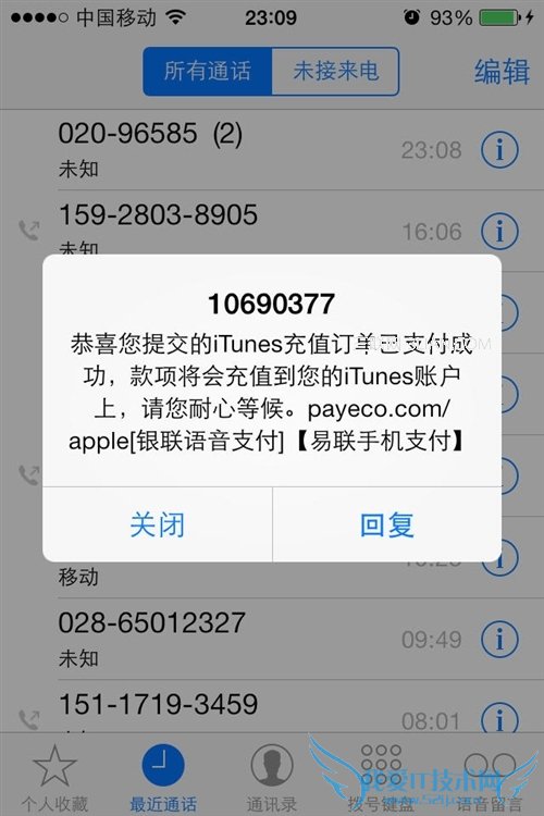 STEP10:接下来一步等待的时间相对长一些。首先App Store会向银行发送付款请求;随后中国银联接收到该笔付款请求后,会用“020-96585”的号码向你填写的手机号码拨打付款电话,需要你输入银行卡支付密码后,该笔充值请求才会被成功授理。