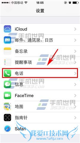 1)点击【设置】进入,再选择【电话】。(如下图)