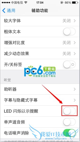 第四步:下拉找到“LED闪烁以示提醒”打开或者关闭即可