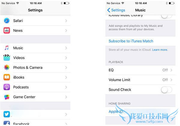 2、第二步,让刚才启动了“家庭共享”功能的电脑保持打开状态,然后来到iOS设备上,选择设置-音乐-查看“家庭共享”栏目,如果该设备的Apple ID和电脑上登录的账户一样,表示该功能已经处于打开状态。