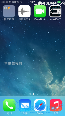 设备第一次重启之后,会有提示让你点击设备界面中的“evasi0n 7”的图标