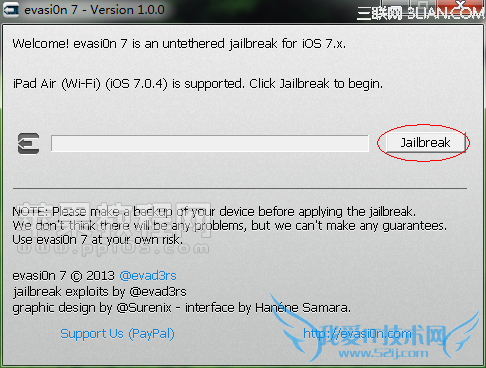 Evad3rs这一次发布的工具只针对iOS 7.x,支持所有可以安装iOS 7的设备,包括iPad Air、Retina iPad mini、iPhone 5s和iPhone 5c。本次越狱并不支持iOS 6.1.3/6.1.4。