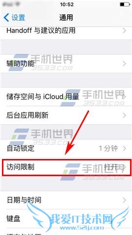 1)进入设置界面点击【通用】,再选择【访问限制】。(如下图)