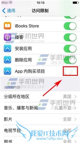2)输入【锁屏密码】,关闭【App内购买项目】右边滑块。(如下图)