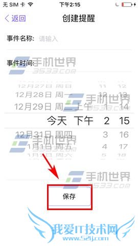 3)设置提醒内容和时间后点击【保存】即可。(如下图)