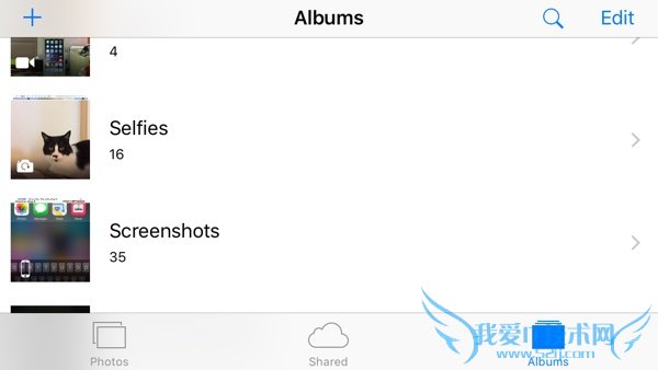 6.Photo应用文件夹:在Photos应用中为自拍和系统截图设立了专属的文件夹。其中通过前置摄像头所拍摄的所有图片都会自动保存到“自拍”文件夹中,当用户通过Home键+电源键所截取的图片则会自动保存到“截图”文件夹中。