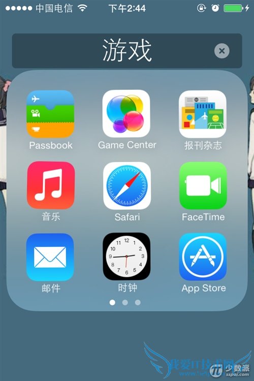 同时,在iOS6中无法收纳在文件夹的“报纸杂志”,在iOS7中也可以与其他程序一起放至在文件夹里了。