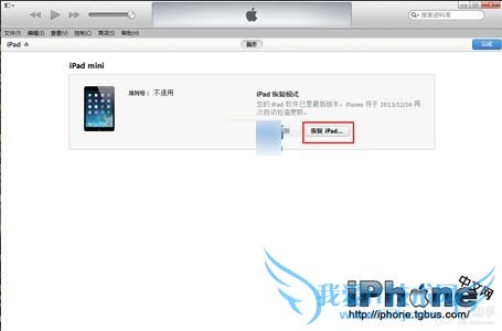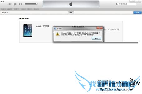 2、iTunes会自动检测到一台等待恢复的设备,点击确定: